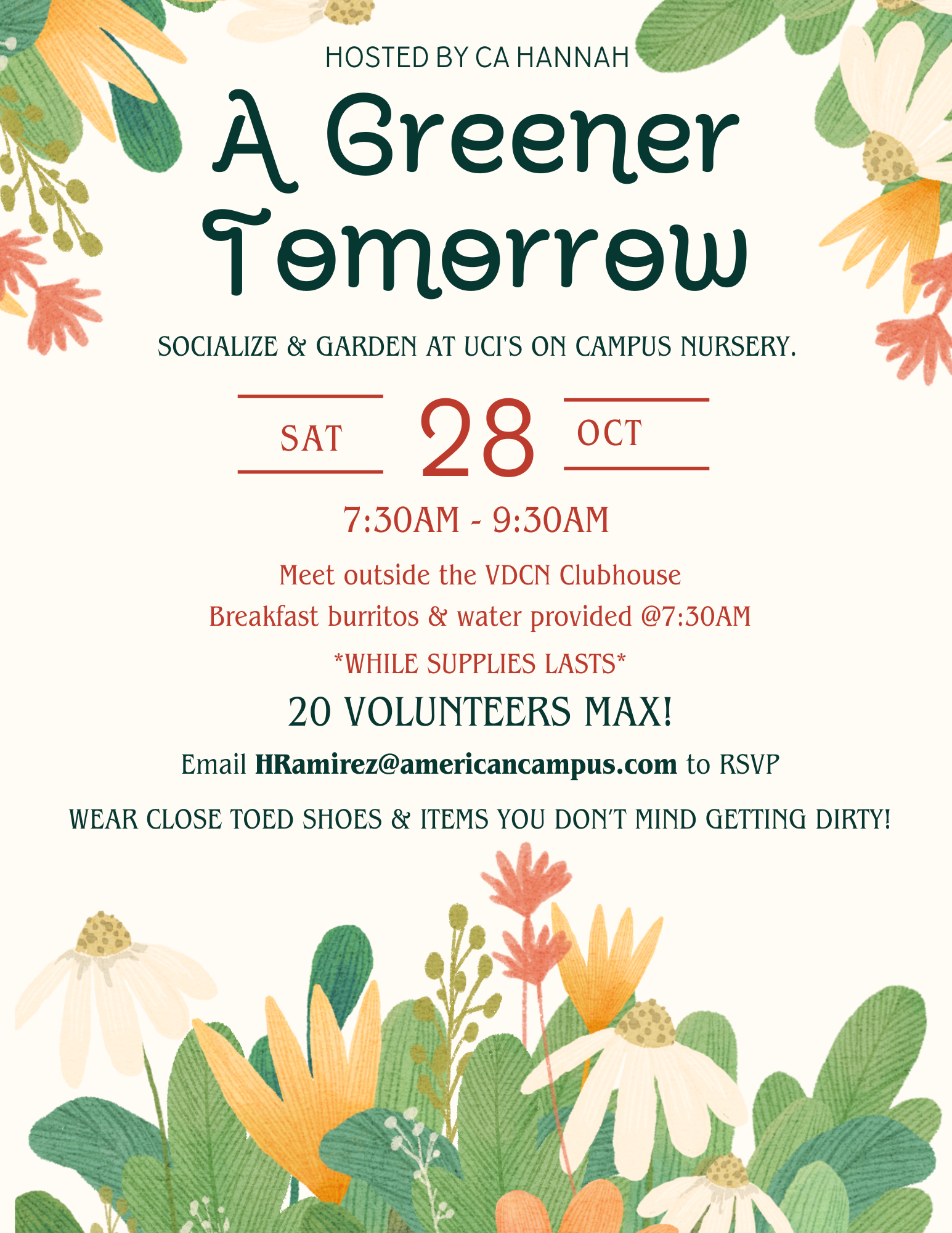 Students participating would dedicate a morning to volunteering alongside the UCI gardening partner organization, 'Shade Tree', undertaking essential yard work in our local campus gardens.